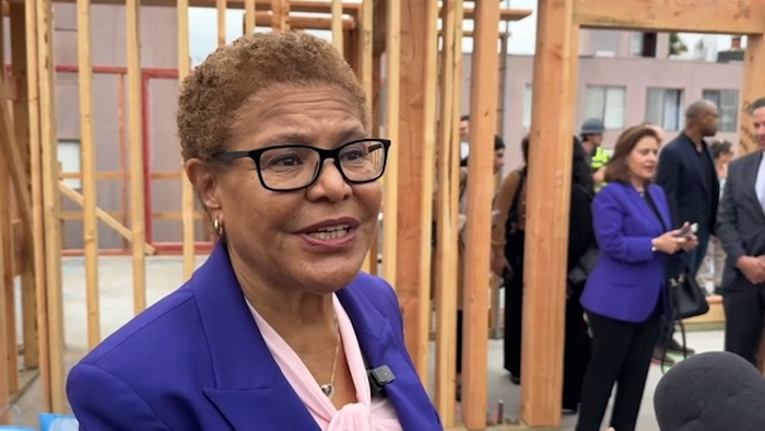 Mayor Karen Bass unveiled an affordable 53-unit apartment for veterans on Tuesday, just a short distance away from the West Los Angeles VA Medical Center.