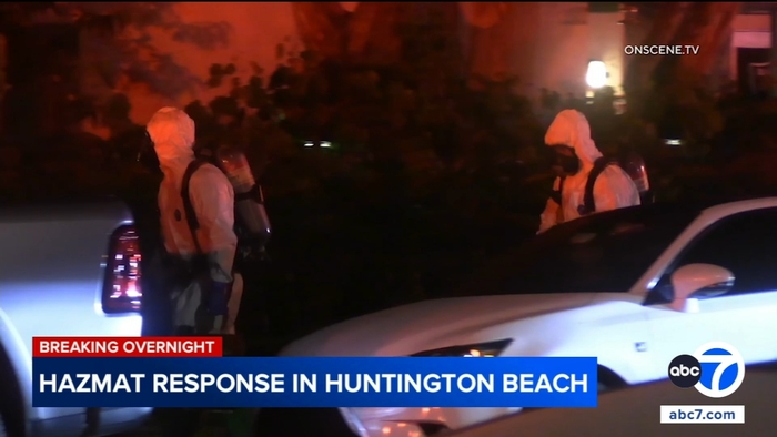 Hazmat crews responded to a home in Huntington Beach overnight to investigate a suspicious substance.