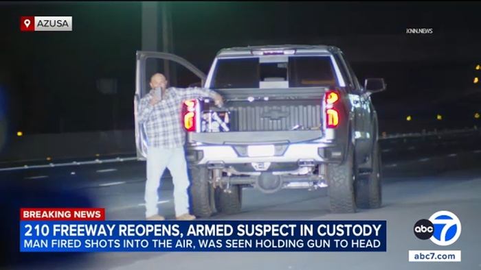 Chase suspect fires into air during standoff on 210 Fwy in Azusa